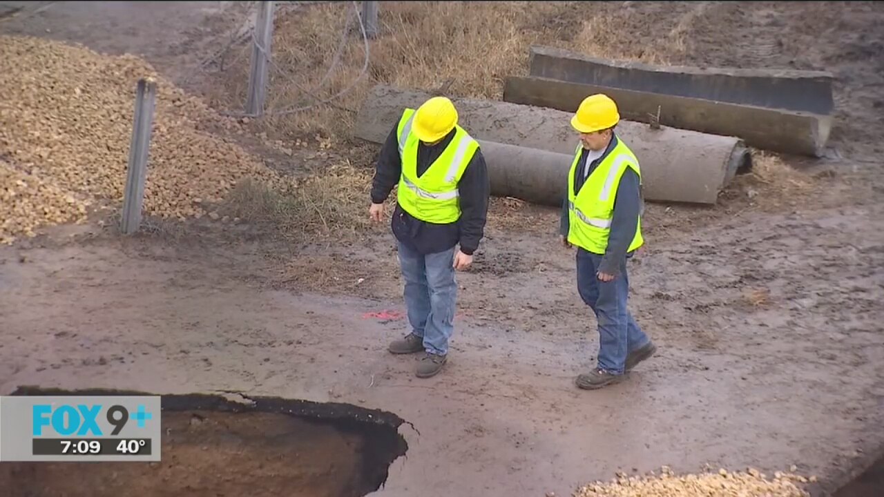 It could be Friday or later before a big section of I-694 reopens in Oakdale, Minn., after a water main break Sunday opened a large hole beneath the roadway.