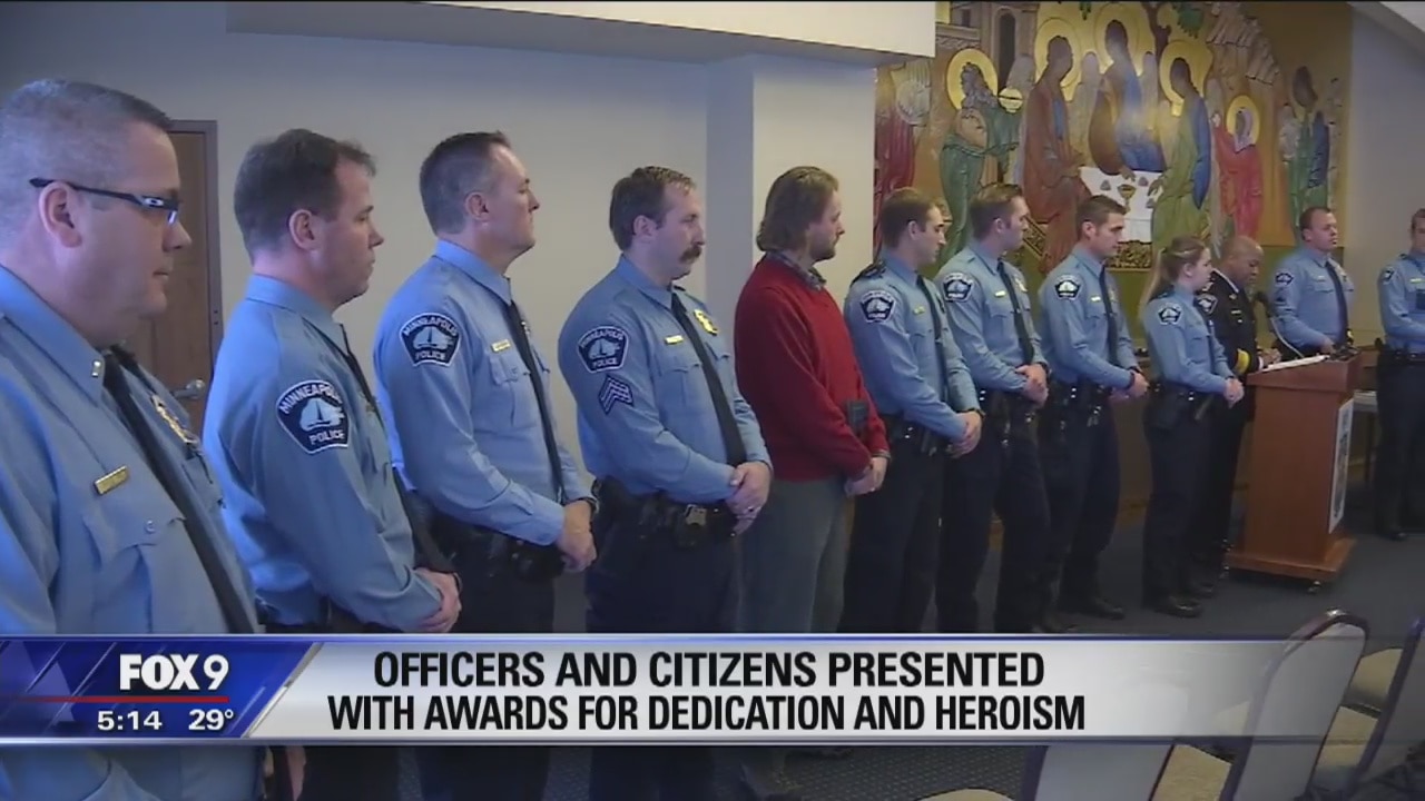 Minneapolis police presented awards to officers and civilians for their response during the blast at Minnehaha Academy in August.