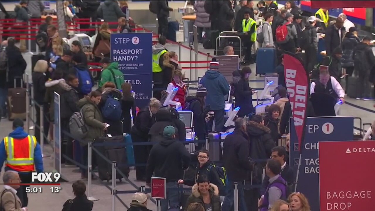 Crowds fill the Minneapolis St. Paul Airport, leaving Minneapolis after Super Bowl LII.