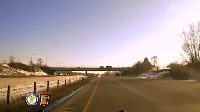 A large piece of heavy duty plastic flew off a dump truck on Highway 52 in Inver Grove Heights, Minnesota and engulfed a passing SUV. Video credit: Minnesota State Patrol