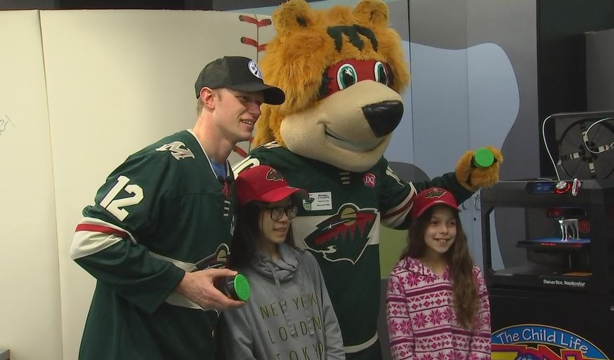 Wild's Staal gives 'Hat Trick' hats to kids at Children's Hospital