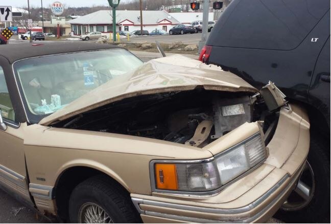 Distracted driver eating a cheeseburger causes crash
