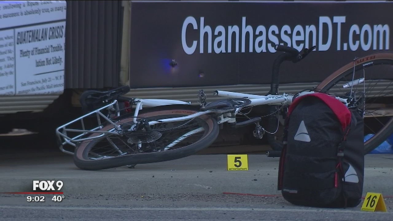 A bicyclist died in a collision with the light rail train Tuesday night in Minneapolis.