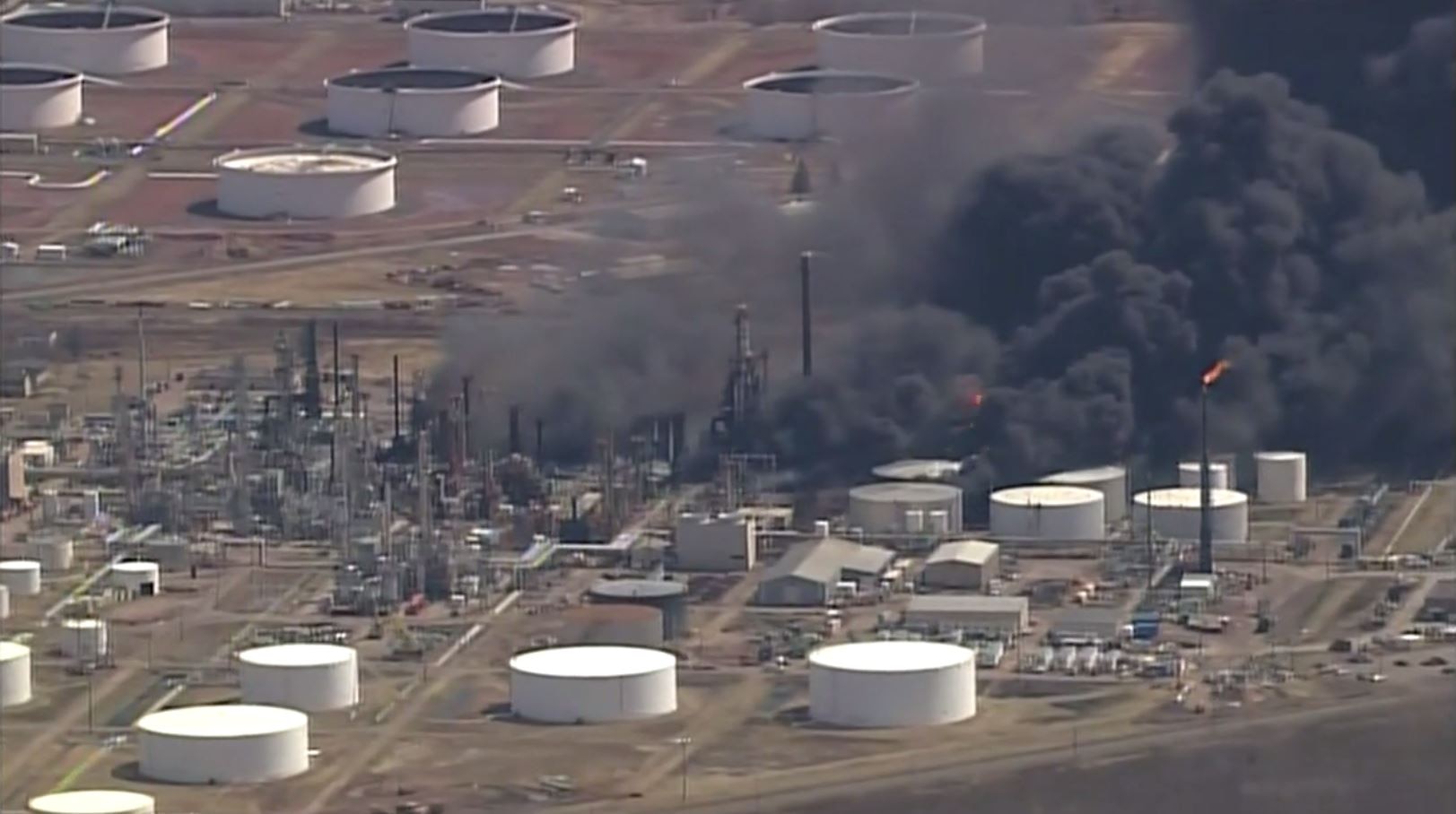 Chopper view of oil refinery explosion