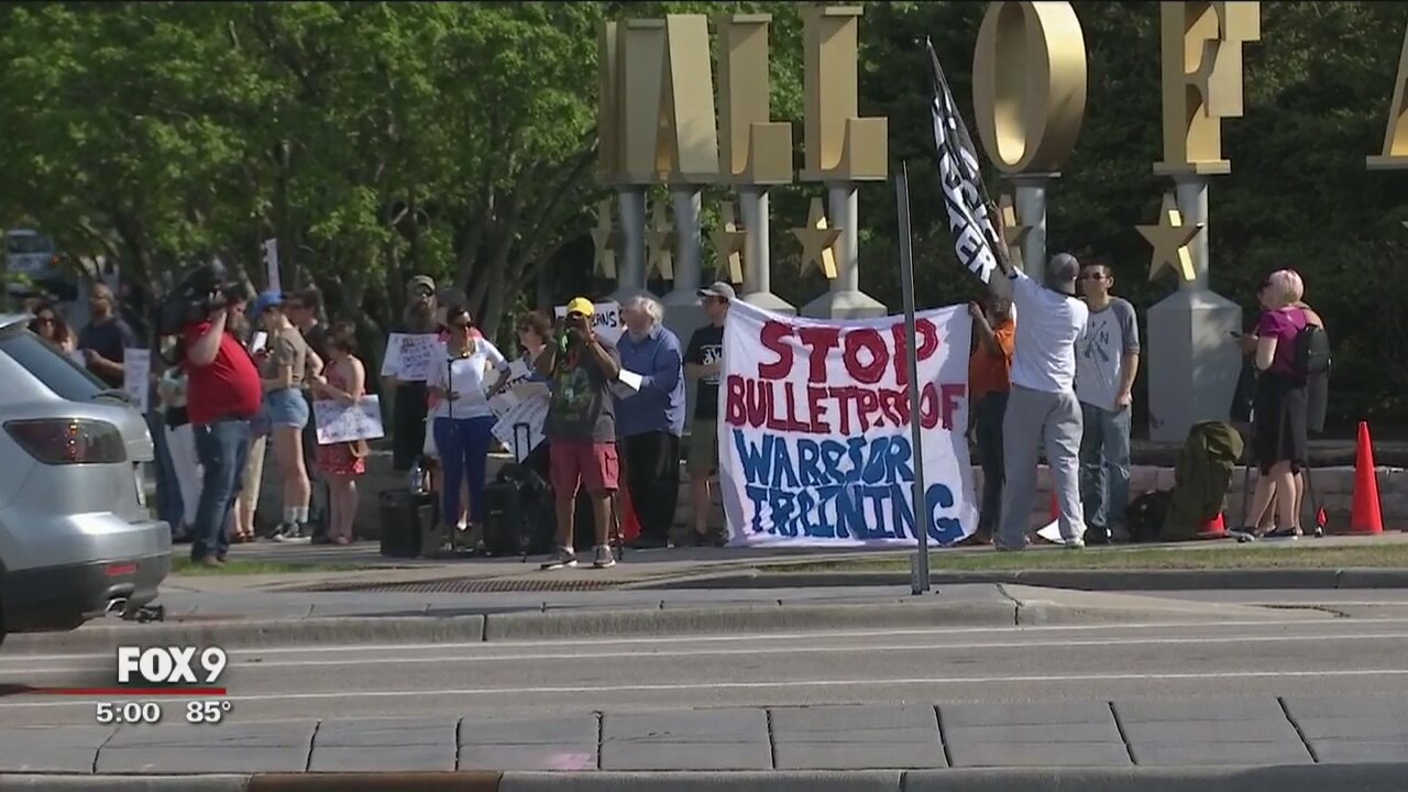 Activists protested the 'bulletproof' police training at the Mall of America Wednesday, arguing that it promotes "police warrior mentality."