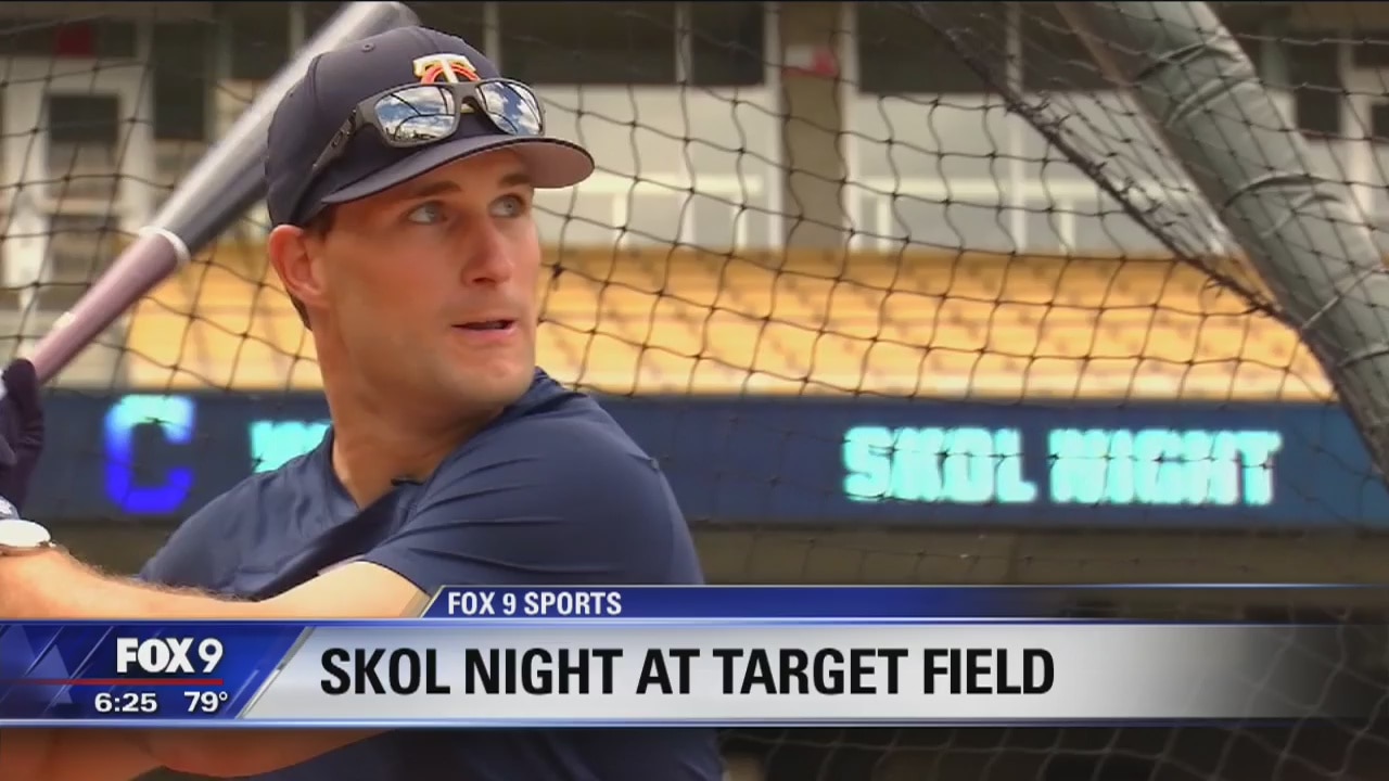 As part of SKOL Night at Target Field, some members of the Minnesota Vikings took batting practice before the Twins? game against the Cleveland Indians.