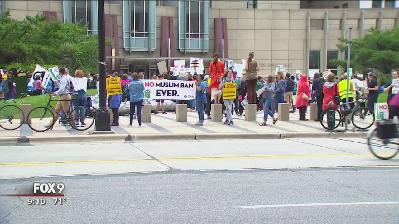 Groups protested in Minneapolis Tuesday after the Supreme Court upheld President Trump's travel ban.