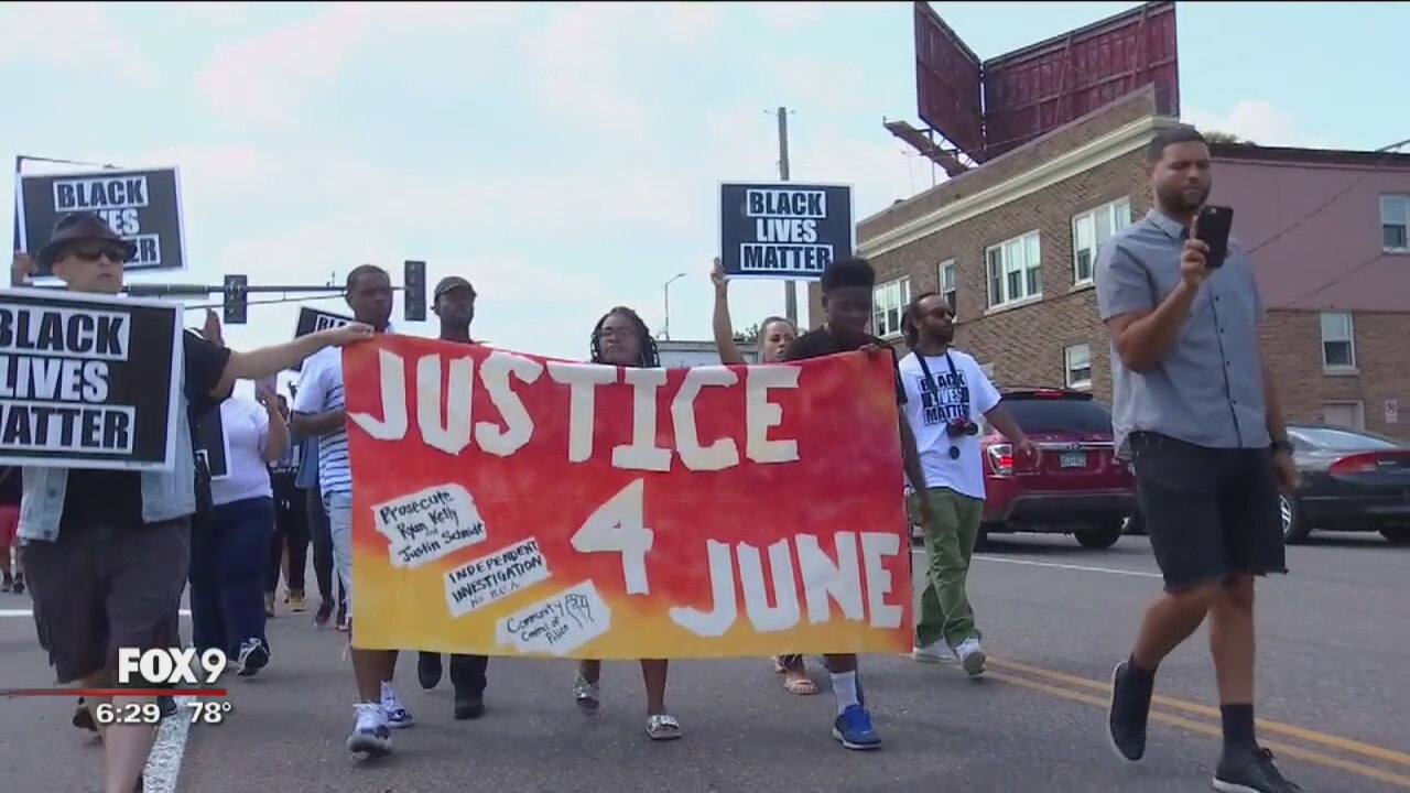 Protesters marched to the offices of the BCA Friday demanding release of the body camera video in the Thurman Blevins shooting.