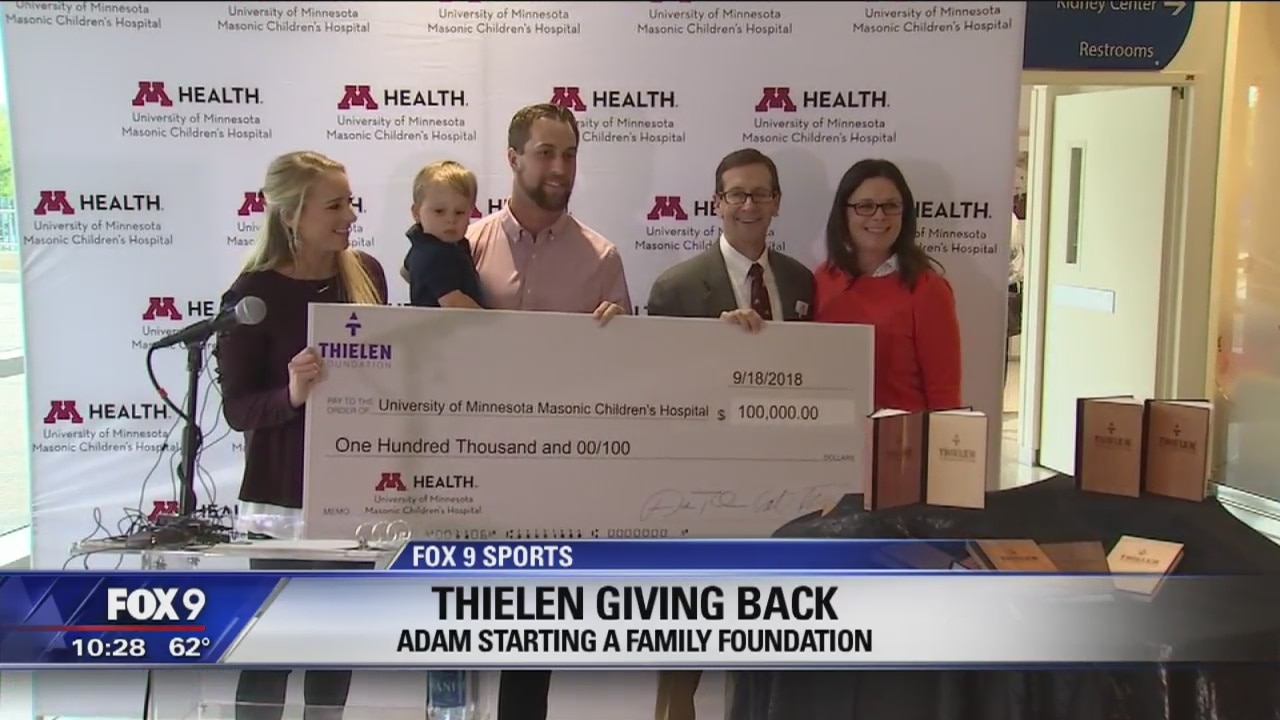 Vikings wide receiver Adam Thielen and his wife Caitlin launched the Thielen Foundation at the University of Minnesota Masonic Children's Hospital Tuesday.