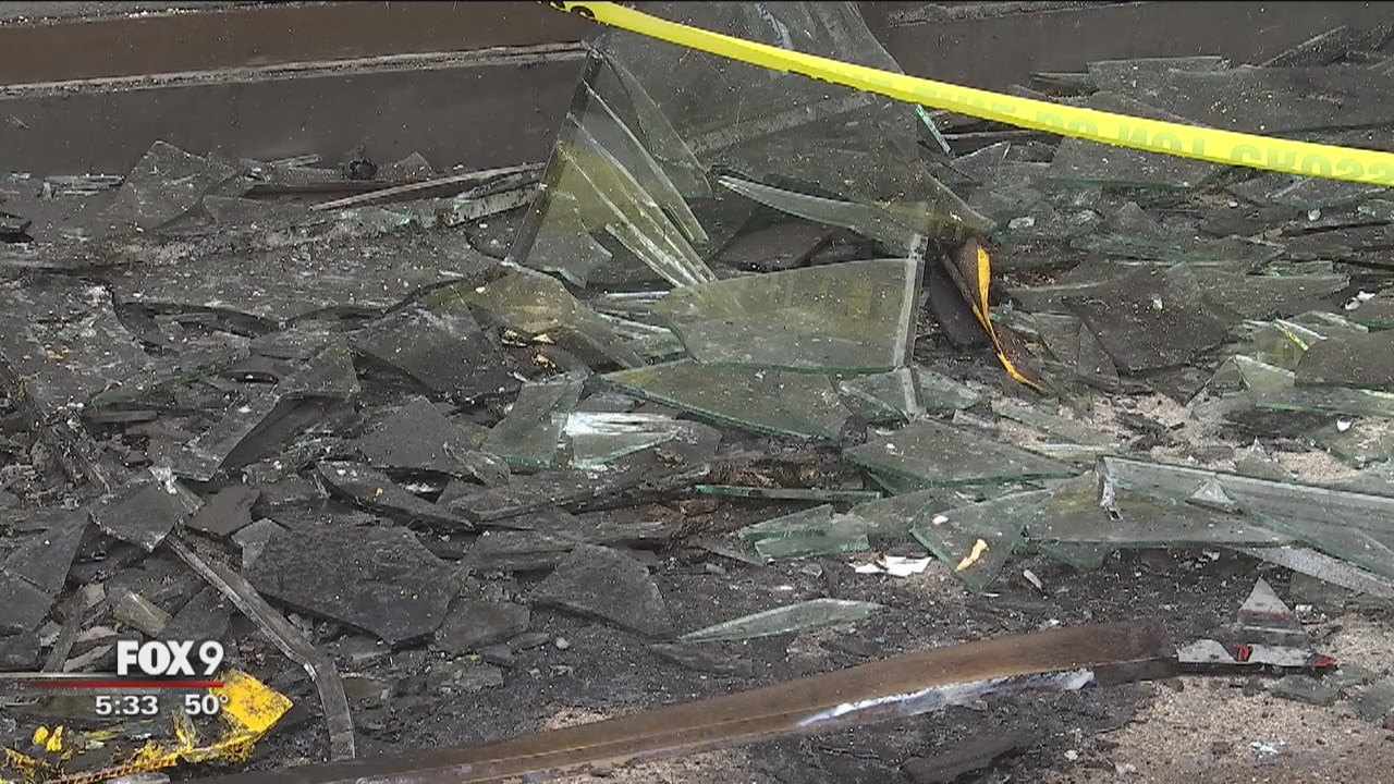High school students help a man after his convenience store was destroyed in an act of arson in Minneapolis.
