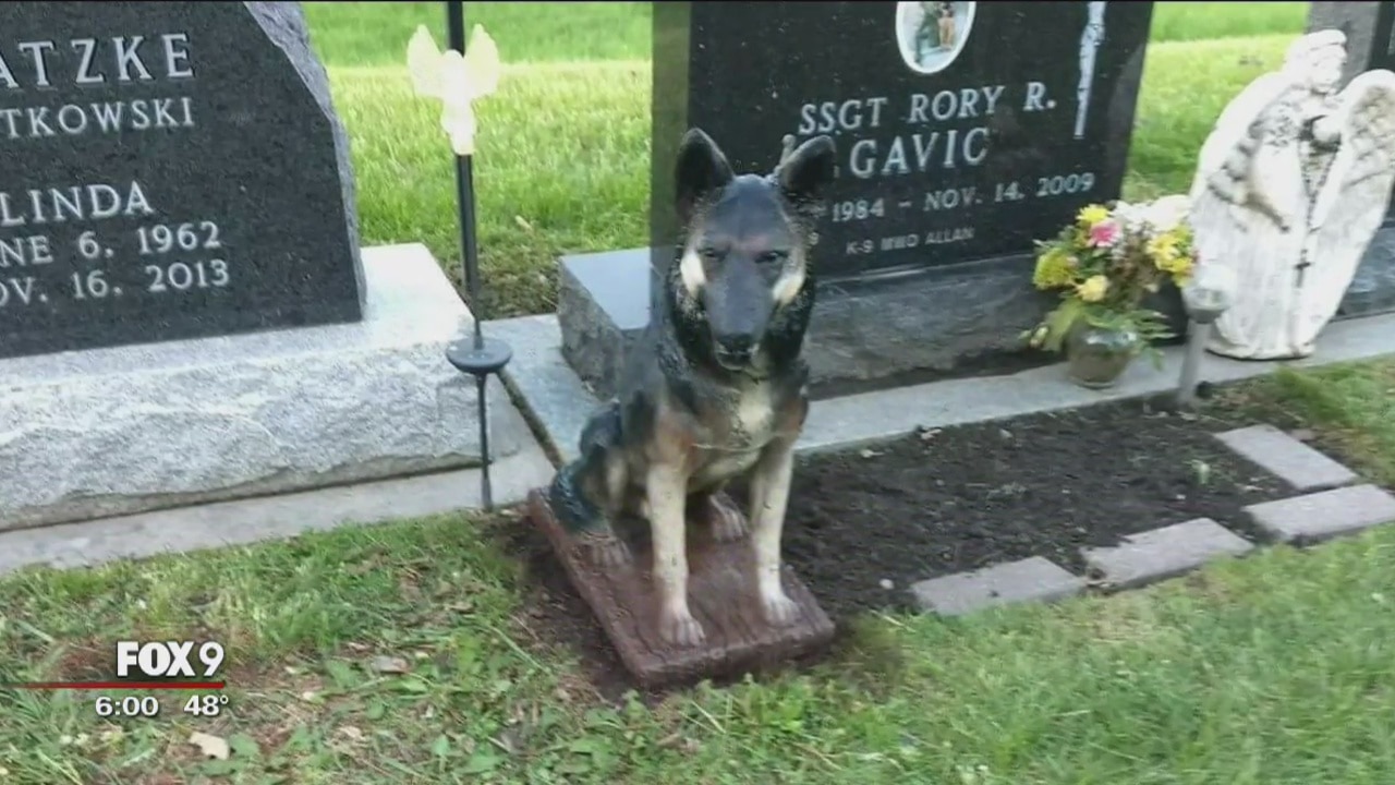 A statue of a dog, which sat at the grave of an Air Force canine officer, has been stolen.