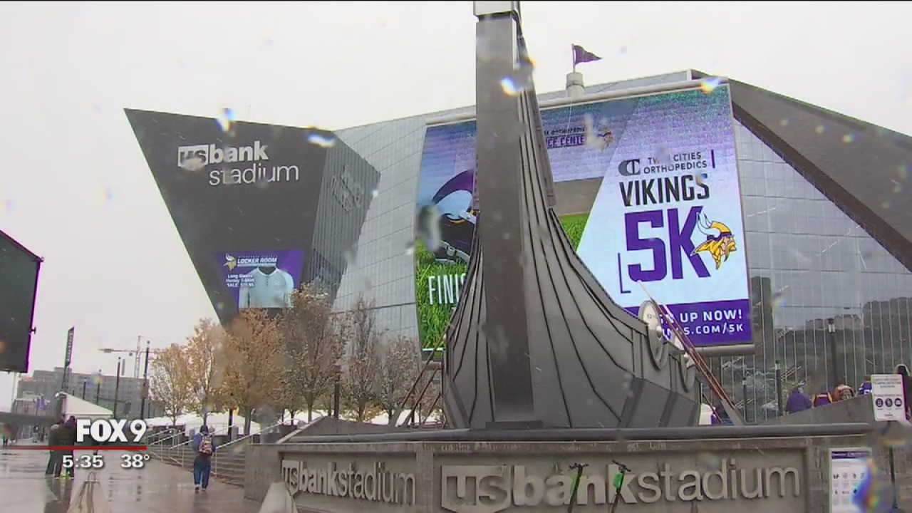 Snowy October morning doesn't phase Vikings fans at U.S. Bank Stadium