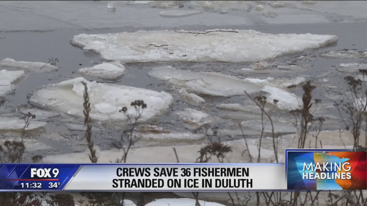 Duluth firefighters save 35 fishermen after ice goes adrift