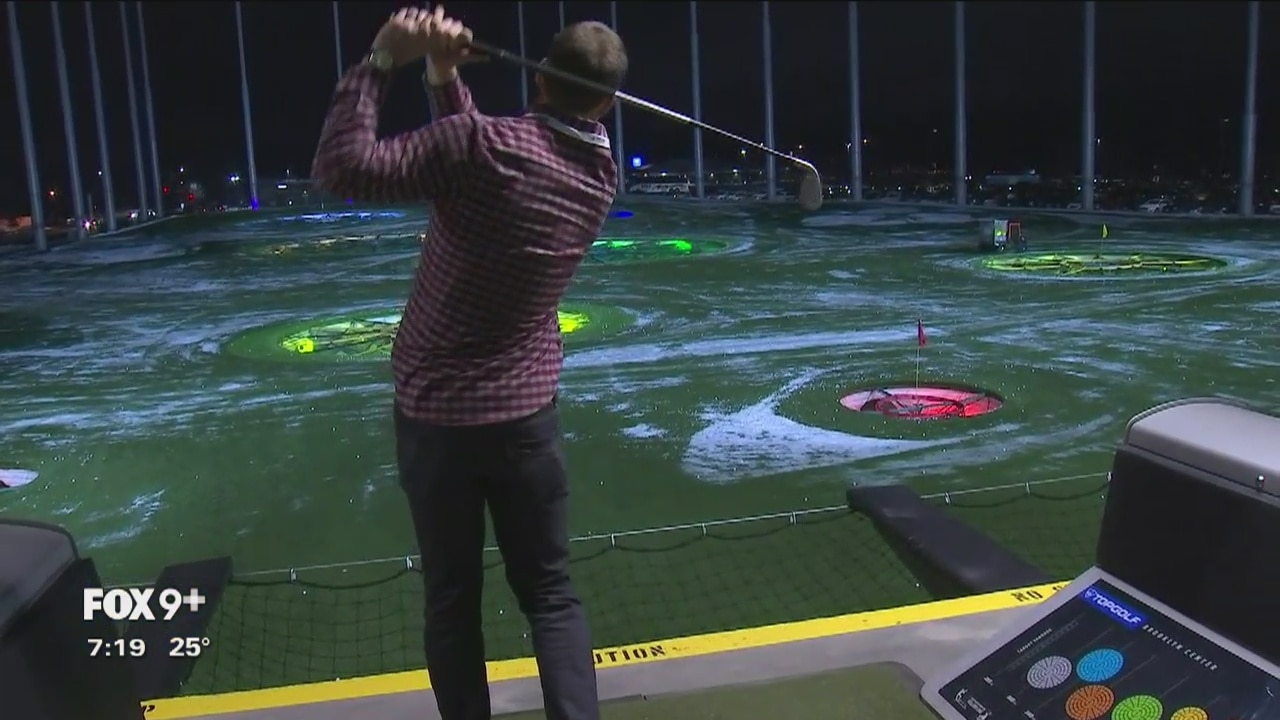 Minnesota Vikings quarterback showed off his golfing skills at Top Golf during a charity event for the Thielen Foundation.