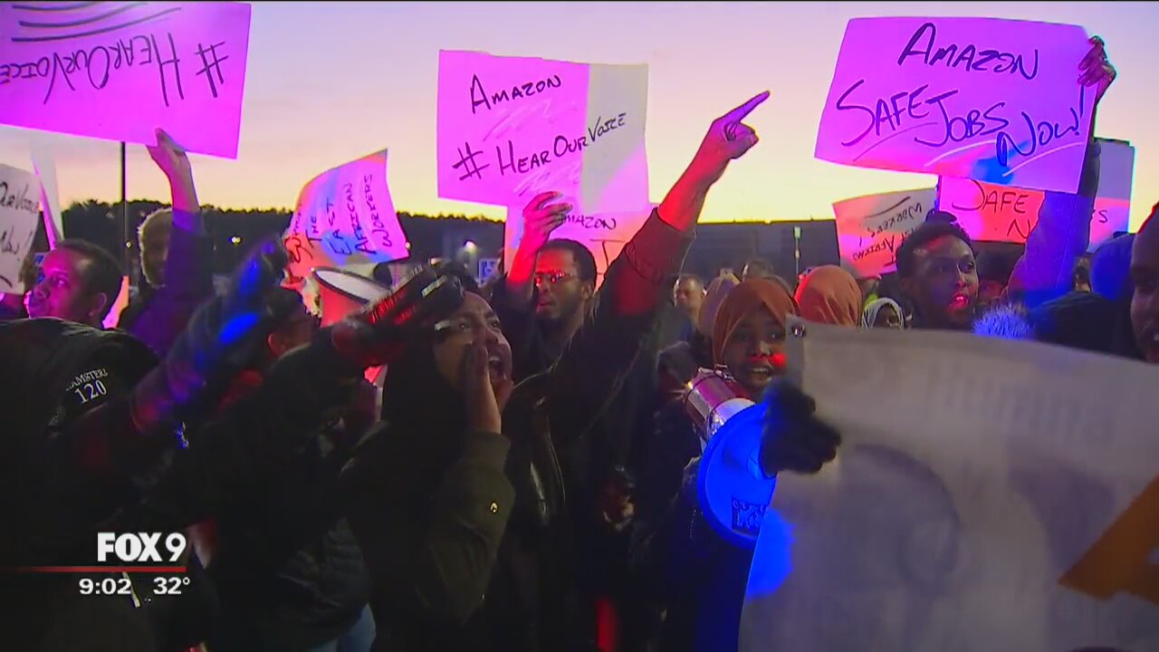 There were outcries from Amazon employees in Shakopee Friday night as protesters demonstrated outside the Fulfillment Center.