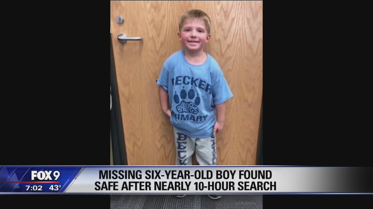 A 6-year-old boy who went missing in Becker, Minnesota Tuesday night was found a mile and a half from home with his family dog.