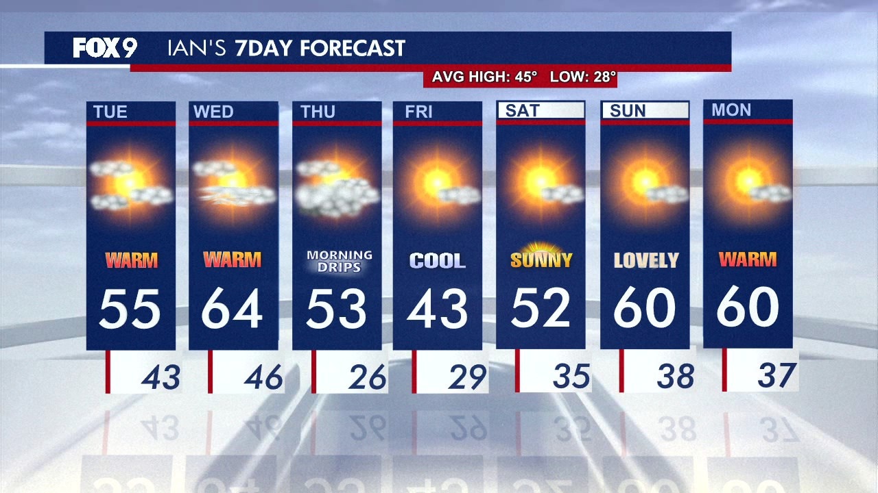 FOX 9 Chief Meteorologist Ian Leonard has your Monday evening forecast. Our mild week continues with temperatures above normal for March.