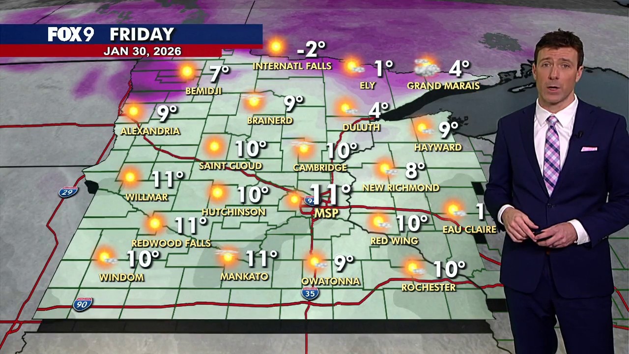 FOX 9 meteorologist Cody Matz has the latest Friday forecast.