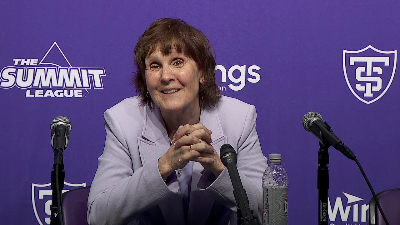 The University of St. Thomas women's basketball team beat Kansas City 73-71 Wednesday night at Lee and Penny Anderson Arena in the final home game for Ruth Sinn, who is retiring after 21 seasons. Jada Hood scored the game-winning basket with about six seconds to play after the Tommies forced a turnover out of a press. Hood and Sinn spoke after the win.