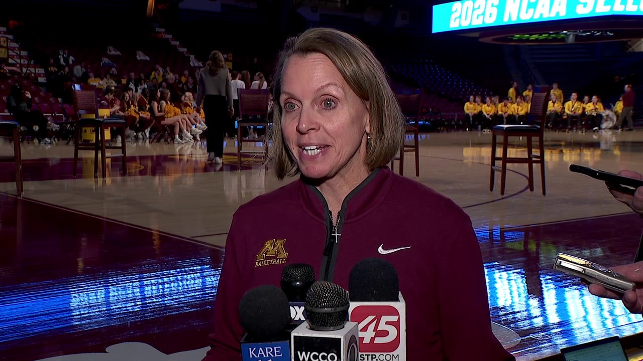 The University of Minnesota women's basketball team will host an NCAA Regional next weekend. The Gophers are the No. 4 seed in the Sacramento Region and will face Green Bay next Friday at Williams Arena. Gophers' coach Dawn Plitzuweit, and players Sophie Hart, Mara Braun, Tori McKinney, Amaya Battle and Grace Grocholski talked after the NCAA Selection Show about the excitement for March Madness.