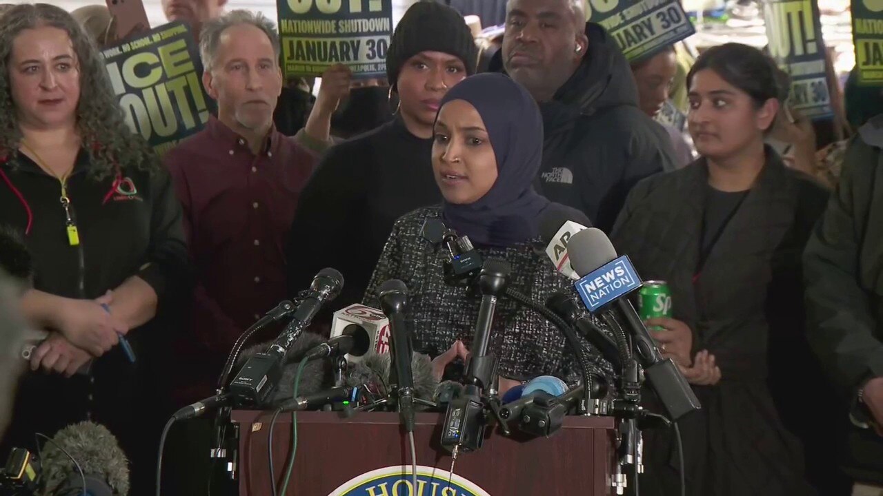 Minnesota lawmaker Ilhan Omar and other Minneapolis leaders spoke at Karmel Mall Wednesday night after a tour and spoke about the community, and the threat that ICE agents are presenting to the area. Omar also addressed being sprayed at a north Minneapolis townhall Tuesday night.