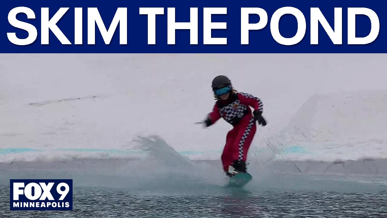 With skiing season coming to an end at Hyland Hills, skiers took part in a yearly tradition, trying to skim their way across a pond to mark the end of the skiing season.