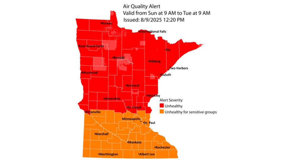 MINNEAPOLIS (FOX 9) - Heavy surface smoke from wildfires in Canada is drifting across Minnesota on Monday, with unhealthy air quality levels expected in parts of the state.