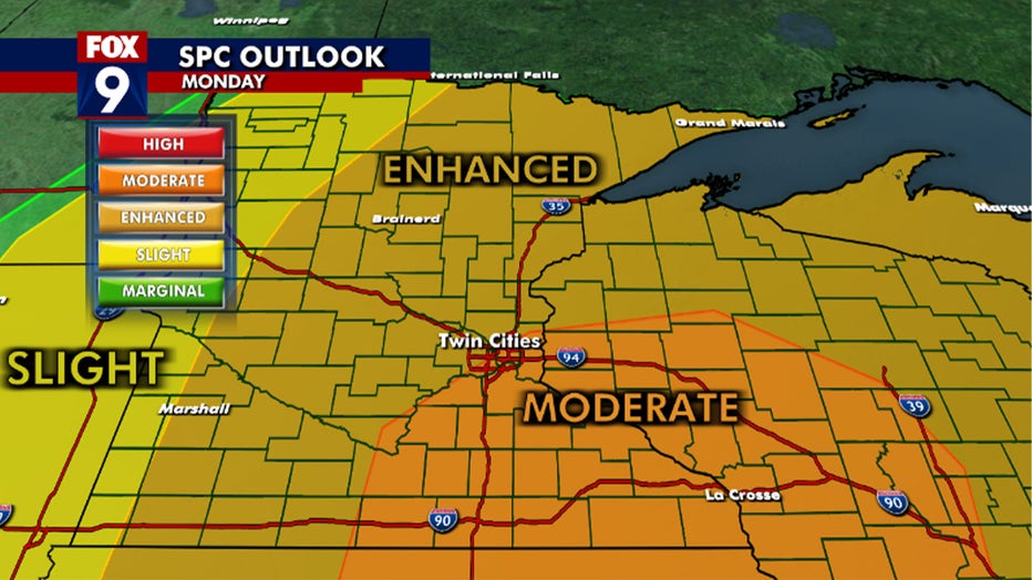The Storm Prediction Center has placed the entire state under a threat for severe weather with an increasing concern for widespread severe weather for portions of southeastern Minnesota, including parts of the metro.