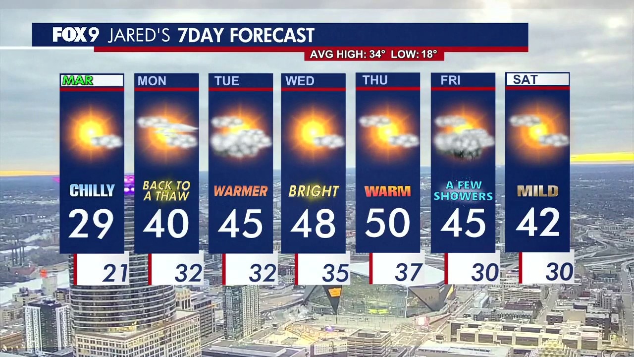 Sunday will be the last cool day before mild temperatures return for the work week. FOX 9 meteorologist Jared Piepenburg has the full forecast.