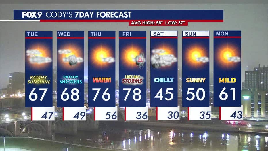 Morning fog will clear for a quiet and mild Tuesday with highs in the 60s. Parts of southeastern and northern Minnesota could see some rain showers, while the rest of the state stays dry. FOX 9 meteorologist Cody Matz has the forecast.