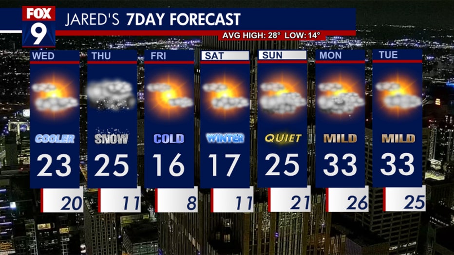 What we know: Wednesday will feature a mix of sun and clouds with northwest winds at 5-15 mph. Temperatures will stay fairly steady in the low to mid 20s, though it will feel like its in the lower teens. The Twin Cities metro daytime high is 23 degrees.