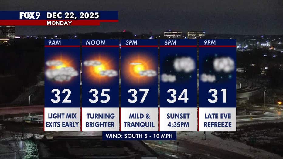 MINNEAPOLIS (FOX 9) - A light wintry mix will give way to a brighter and warmer afternoon in Minnesota on Monday.