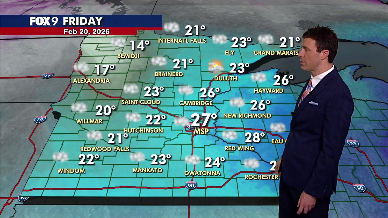 MINNEAPOLIS (FOX 9) - Friday will be breezy and cloudy with temperatures holding in the 20s for much of Minnesota.