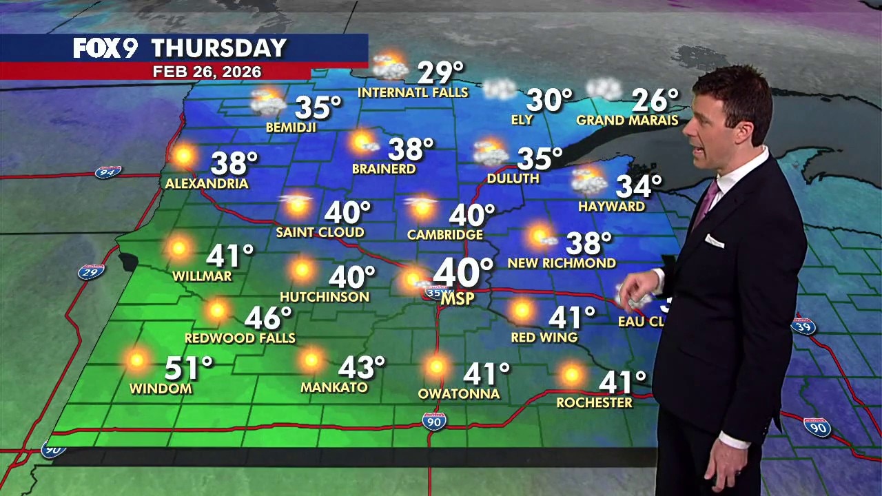 Expect a bright and warmer Thursday in Minnesota, with highs in the 30s and 40s. FOX 9 meteorologist Cody Matz has the full forecast.