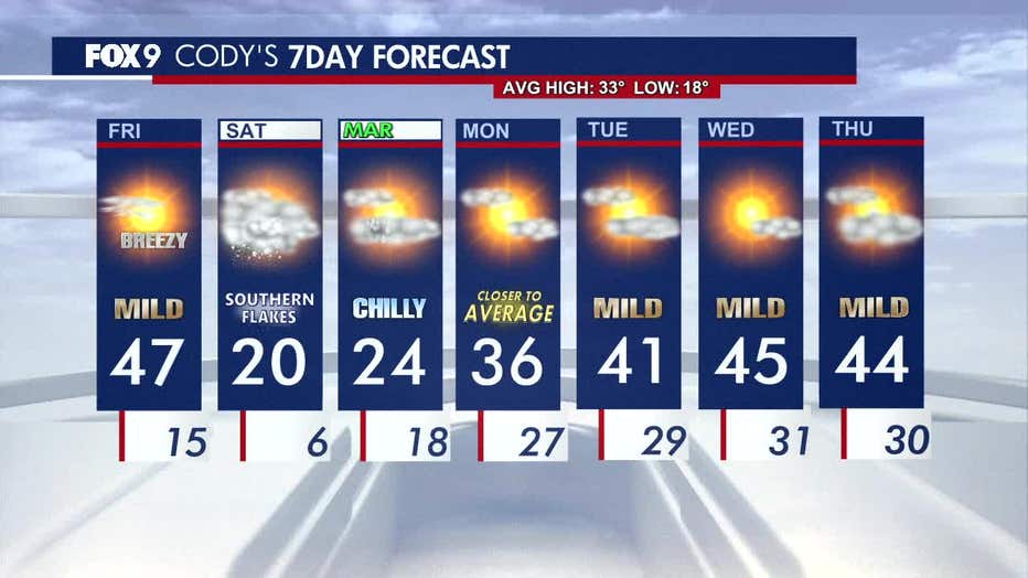 Enjoy a warmer but windy Friday before a cold front brings falling temperatures and weekend snow chances. FOX 9 meteorologist Cody Matz has the full forecast.
