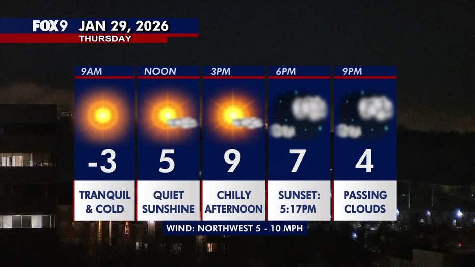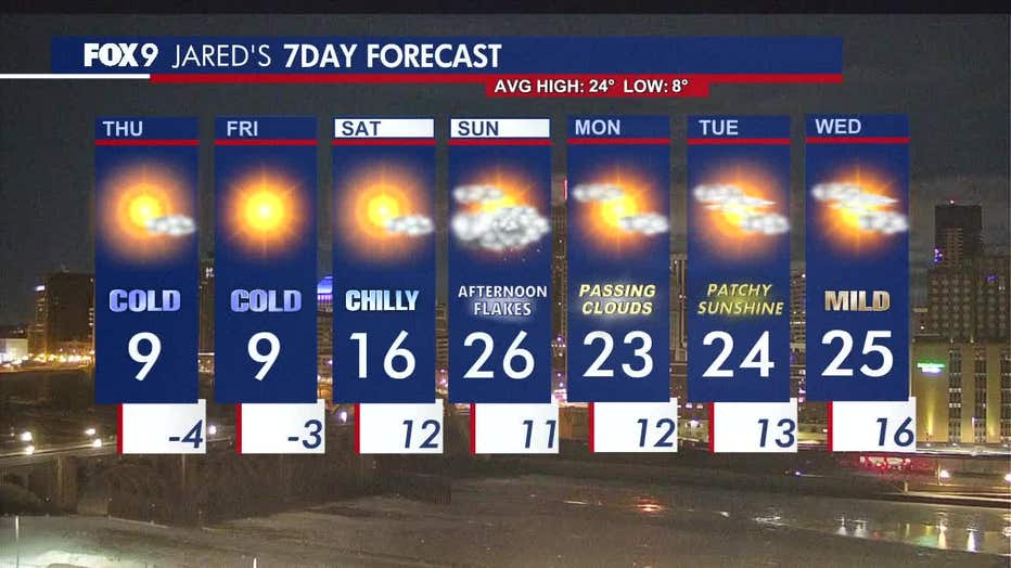 It's another sunny, cold day on Thursday, with single-digit temperatures persisting through Friday before warming up this weekend. FOX 9 meteorologist Jared Piepenburg has the full forecast.