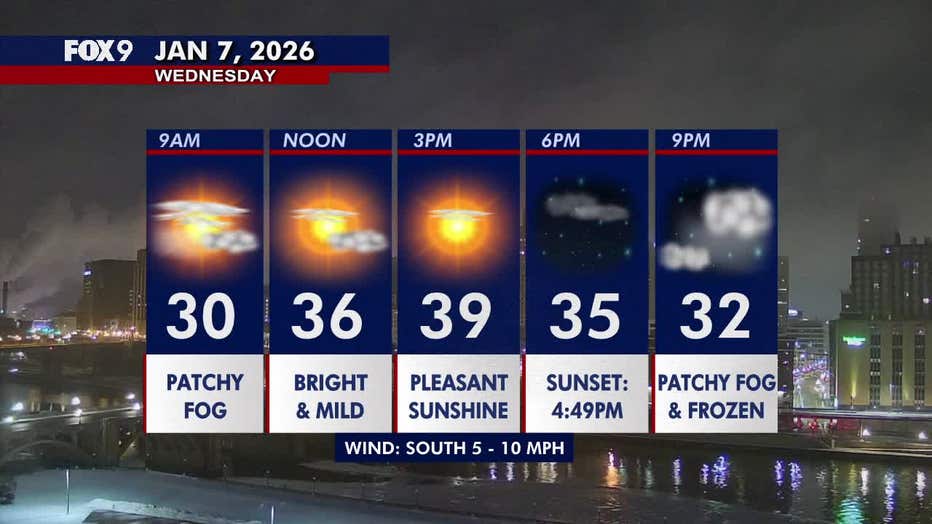 MINNEAPOLIS (FOX 9) - Minnesota is in for a mild Wednesday as patchy morning fog clears for a brighter afternoon.