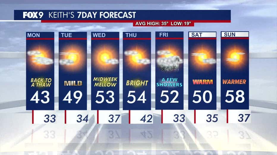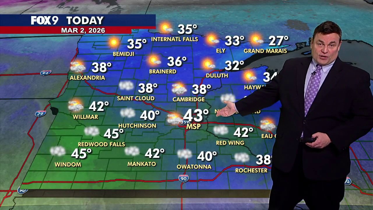 MINNEAPOLIS (FOX 9) - Above-average temperatures settle in across Minnesota to start March, with highs in the 40s Monday and 50s building through the week.