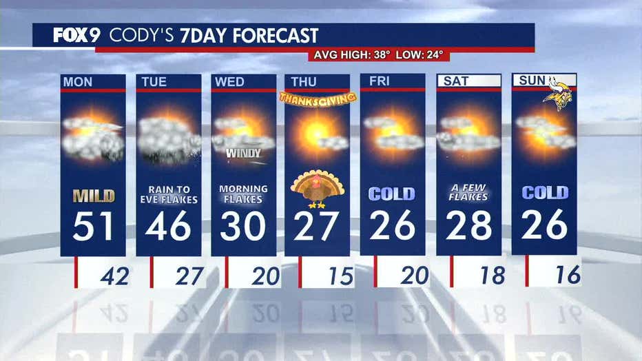 Expect a seasonably mild and cloudy Monday ahead of rain and snow opportunities for parts of Minnesota on Tuesday. FOX 9 meteorologist Cody Matz has the full forecast.