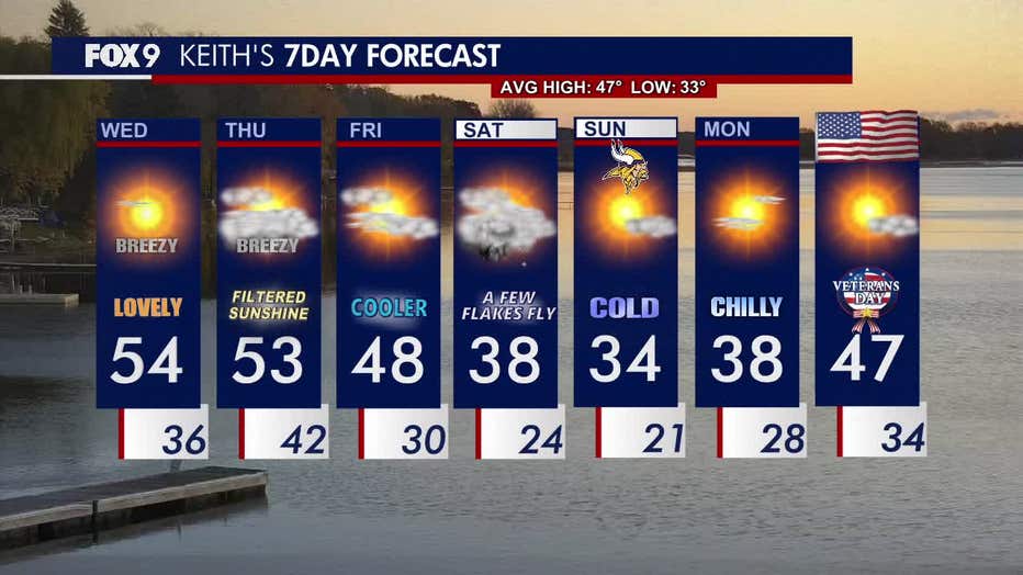 MINNEAPOLIS (FOX 9) - Enjoy above-average temperatures through Friday before the cold sets in for the weekend.