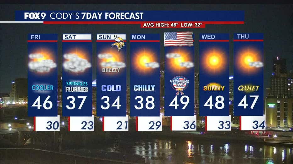 Expect a chilly and mostly cloudy Friday afternoon with highs topping out in the 40s. FOX 9 meteorologist Cody Matz has the full forecast.