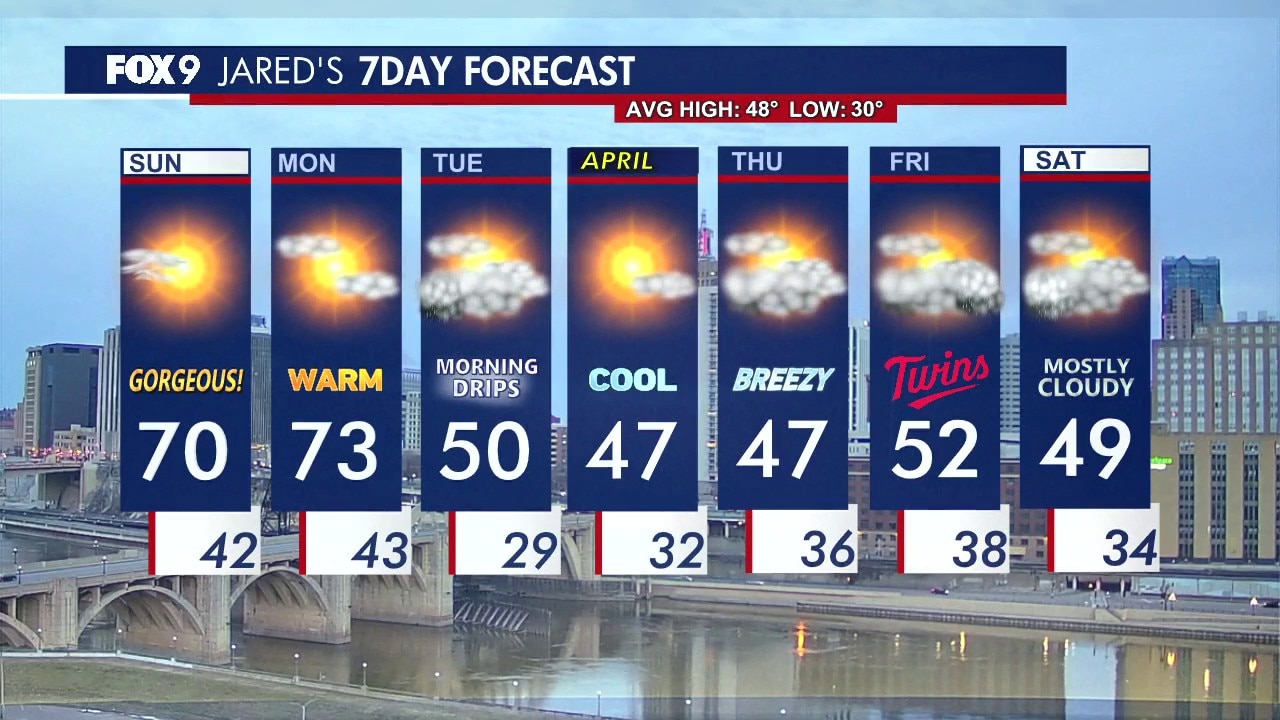 Expect a gorgeous Sunday with a warmer Monday ahead. FOX 9 meteorologist Jared Piepenburg has the full forecast.
