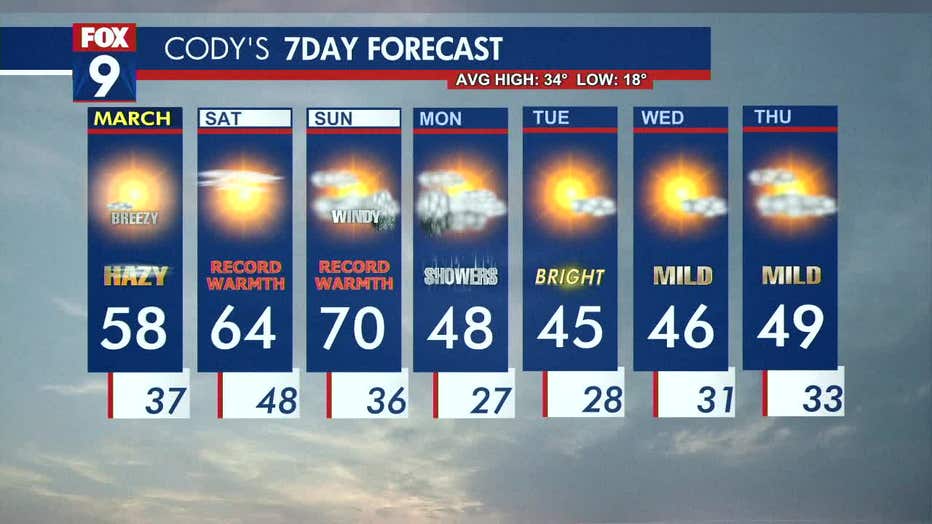 MINNEAPOLIS (FOX 9) - The start of March looks mild and breezy with record warmth possible for the weekend.
