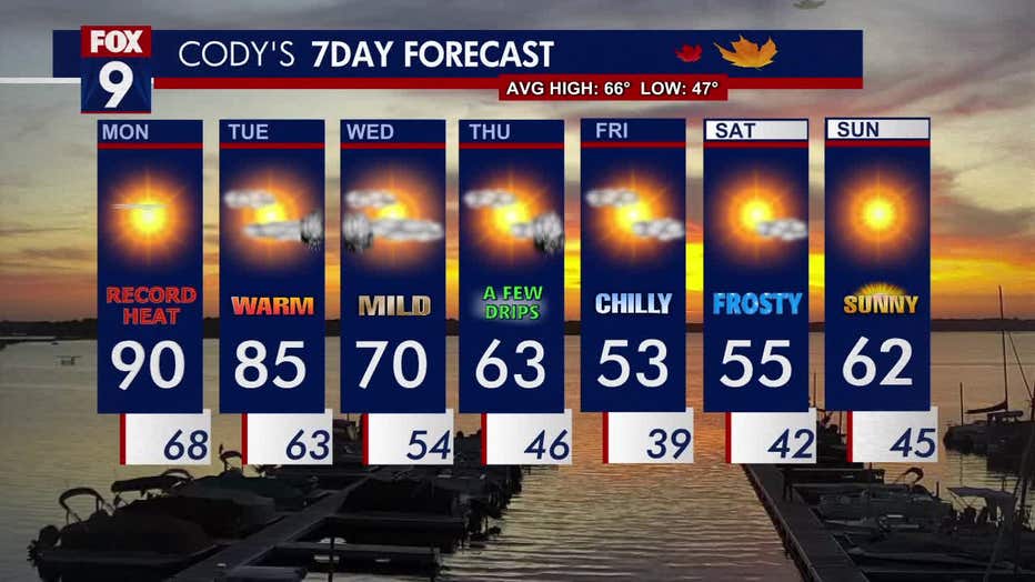 MINNEAPOLIS (FOX 9) - Another record-setting day is possible on Monday, with highs around 90 degrees in the forecast.