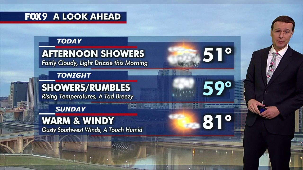 MINNEAPOLIS (FOX 9) - A mix of showers, rising temperatures and a taste of summer are in store for much of Minnesota this weekend.