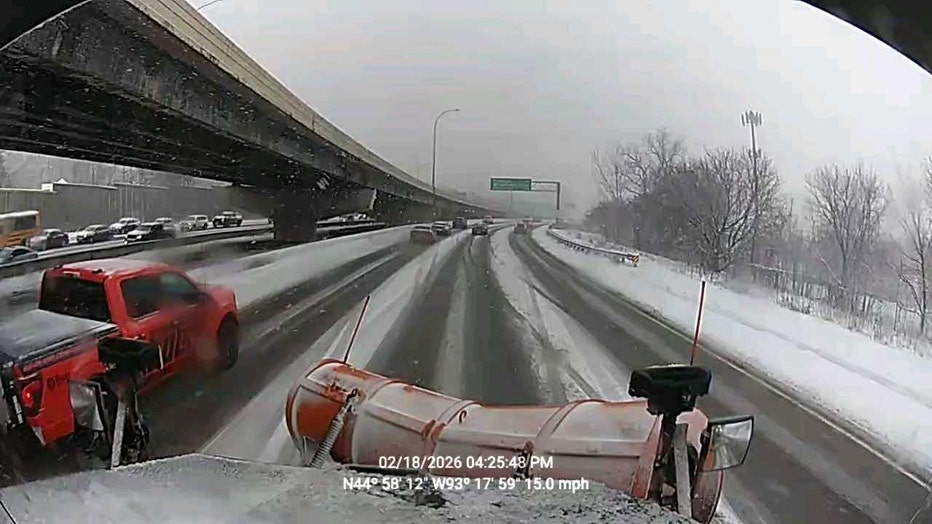 Image from a MnDOT snowplow shows traffic on Interstate I-394. (Supplied)