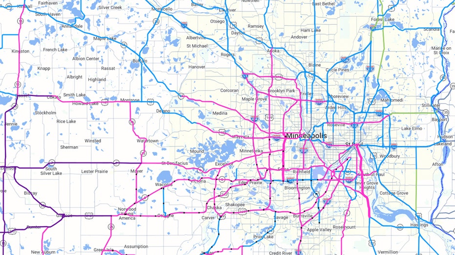 Image shows a MnDOT map with covered road across the Twin Cities. (Supplied)