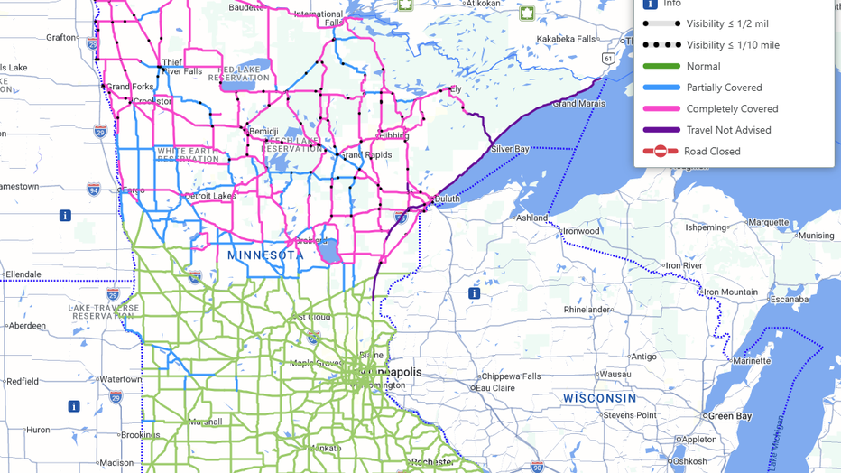 Meanwhile, many roads in northern Minnesota are listed as completely covered in snow. You can find the latest road conditions here.