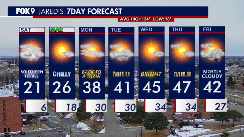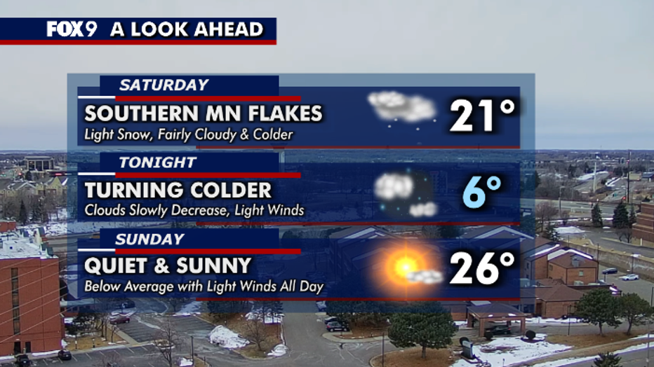 MINNEAPOLIS (FOX 9) - It'll be a cold Saturday with snow in southern and western Minnesota.