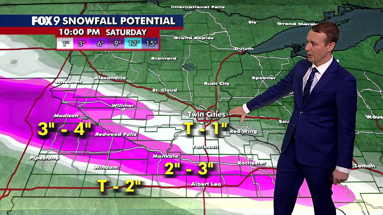 Snowfall is expected to be concentrated in southwest Minnesota, while the Twin Cities will likely see less than an inch. FOX 9 meteorologist Jared Piepenburg has the full forecast.